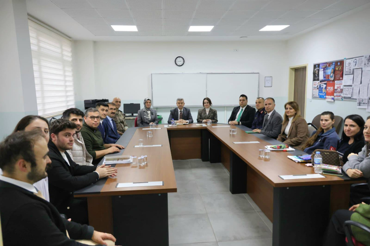 Vali Ergün ve beraberindekiler, sınıfları gezerek öğrencilerle sohbet ederek, öğrencilerin eğitim hayatlarına dair düşüncelerini dinledi, tavsiyelerde bulundu.