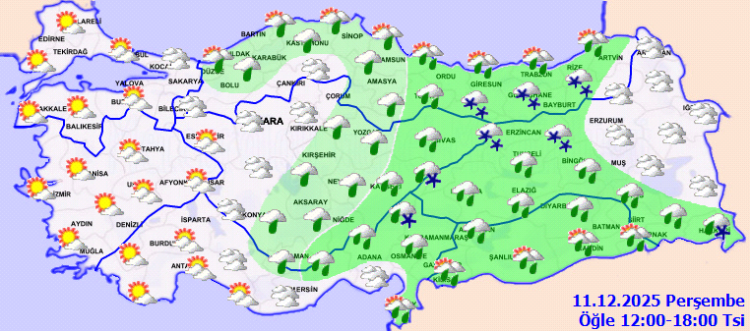 ANKARA (İGFA) – Meteoroloji Genel Müdürlüğü, 11 Aralık Perşembe gününe ilişkin hava tahmin raporunu yayımladı.