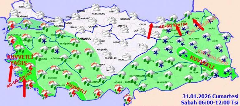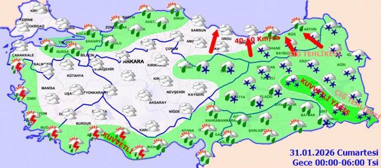 Meteoroloji Genel Müdürlüğü tarafından yapılan son değerlendirmelere göre, ülkemizin genelinde hava durumu oldukça bulutlu ve aralıklı yağışlı geçecek. Beklenen yağışların büyük çoğunluğu yağmur ve sağanak şeklinde olurken, Kıyı Ege ve Akdeniz bölgelerinde gök gürültülü sağanak, İç Ege’nin yüksek kesimleri ile İç Anadolu’nun kuzeydoğusunda ve Doğu Anadolu’da karla karışık yağmur ve kar görülmesi bekleniyor. Yağışların özellikle Kıyı Ege, Batı ve Doğu Akdeniz ile Çanakkale, Tekirdağ ve Osmaniye çevrelerinde kuvvetli olacağı öngörülüyor. Ayrıca, Doğu’da buzlanma ve donlaşı bu yılın olağan durumu haline gelecektir. Doğu Karadeniz’in iç kesimlerinde ve Doğu Anadolu’da kesinlikle çığ tehlikesi mevcut.